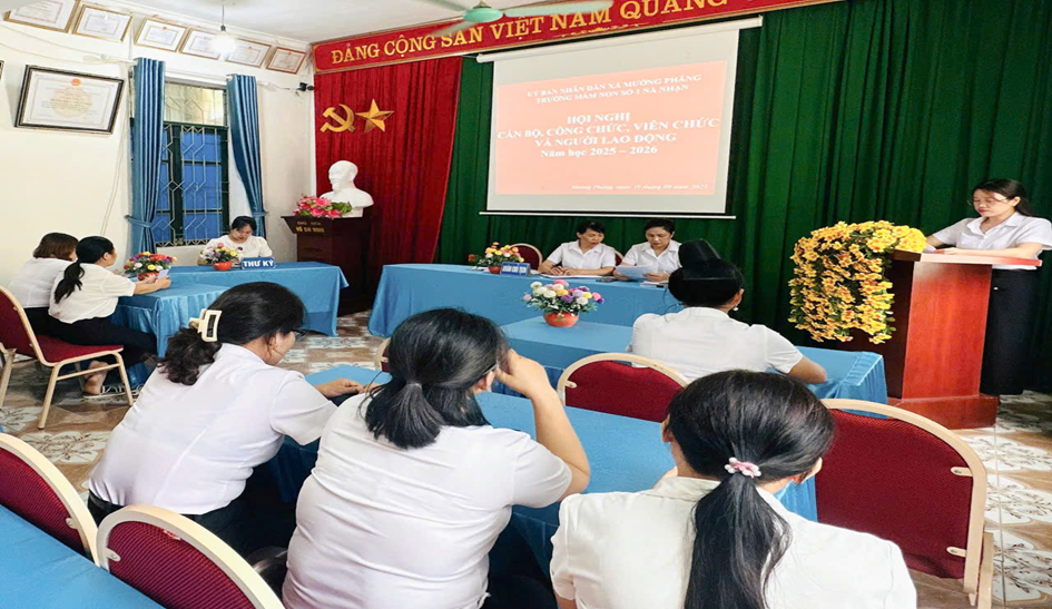 Với tinh thần làm việc nghiêm túc, dân chủ, Hội nghị Cán bộ, Viên chức và Người lao động năm học 2025-2026 của Trường Mầm non số 1 Nà Nhạn đã thành công tốt đẹp. Đây là dịp để mỗi cán bộ, giáo viên, nhân viên thêm quyết tâm, đoàn kết, nỗ lực phấn đấu hoàn thành thắng lợi nhiệm vụ năm học mới.